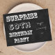 Comience su sorpresiva fiesta de cumpleaños número 60 con una nota divertida con esta moderna fiesta de cumpleaños número 60 con un toque de época. El diseño presenta tipografía en la parte delantera que dice "SORPRESA 60° PARTIDO DE CUMPLEAÑOS". Además, puede personalizar la parte delantera con el nombre del honor de cumpleaños. La parte trasera de la invitación está reservada para los detalles del fiesta. Copyright henishouseofpaper