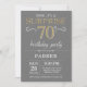 Sorpresa 70.ª invitación de cumpleaños gris y oro