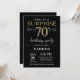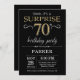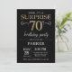 Sorpresa 70 cumpleaños invitación con antecedentes de Purpurina negro y oro.Pizarra. Cumpleaños de adultos. Invitar el cumpleaños de hombres o mujeres. Cualquier edad.