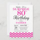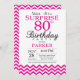 Sorpresa Invitación de cumpleaños número 80 con Chevron rosado caliente. Blanco y negro. Cumpleaños de adultos. Invitación de cumpleaños de hombre o mujer. Para una mayor personalización, haga clic en el botón "Personalizar" y utilice nuestra herramienta de diseño para modificar esta plantilla.