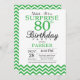 Sorpresa Invitación de cumpleaños número 80 con Chevron verde. Blanco y negro. Cumpleaños de adultos. Invitación de cumpleaños de hombre o mujer. Para una mayor personalización, haga clic en el botón "Personalizar" y utilice nuestra herramienta de diseño para modificar esta plantilla.