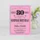Sorpresa 80 cumpleaños Invitación tipografía negra y rosa. Fondo negro y rosa. Cumpleaños de adultos. Cumpleaños de hombres o mujeres. Invite a un niño o a una Chica. 13.º 15.º 16.º 18.º 20.21.30.40.50.60.70.80.90.100. Cualquier edad. Para una mayor personalización, haga clic en el botón "Personalizar" y utilice nuestra herramienta de diseño para modificar esta plantilla.