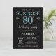 Sorpresa 80ª Invitación de cumpleaños con antecedentes de negro y Purpurina Verde azulado. Pizarra. Cumpleaños de adultos. Invitación de cumpleaños de hombres o mujeres. Cualquier edad. Para una mayor personalización, haga clic en el botón "Personalizar" y utilice nuestra herramienta de diseño para modificar esta plantilla.