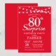 Sorpresa 80.ª Invitación de cumpleaños con String Lights. Fondo Rojo. 13.º 15.º 16.º 18.º 20.21.30.40.50.60.70.80.90.100, cualquier edad. Para una mayor personalización, haga clic en el botón "Personalizar" y utilice nuestra herramienta de diseño para modificar esta plantilla.