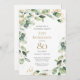 Este exquisito eucalipto acuarela con adornos de hojas de oro y puntos salpicados de oro sorprende la invitación a la fiesta de cumpleaños número 80 con tarjeta es perfecto para celebrar a tu esposa, mamá, hermana, tía, amiga, abuela. Su diseño florido suave es moderno pero tradicional. Seleccione Personalizar esta plantilla para convertirla de forma única en la suya. En segundos verás tus impresionantes invitaciones de cumpleaños número 80.