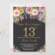 Invitación de 13º cumpleaños a mujeres por sorpresa floral. Flor floral acuarela. Purpurina negro y oro. Rosa, Amarillo, Naranja, Flor Púrpura. Cumpleaños de niños. Por la Chica Lady Adolescente. Para una mayor personalización, haga clic en el botón "Personalizar" y utilice nuestra herramienta de diseño para modificar esta plantilla.