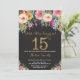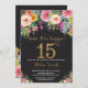 Invitación de 15º cumpleaños para mujeres con sorpresa floral. Flor floral acuarela. Purpurina negro y oro. Rosa, Amarillo, Naranja, Flor Púrpura.Cumpleaños de niños. Para la Chica Lady Adolescente.