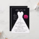 ¿Buscando una sorpresa para una ducha de novia? Esta sorprendente invitación a la ducha de novias incluye un vestido de boda blanco sobre un fondo negro con un ramo de rosa a un lado. La invitación dice "Únete a nosotros" en la parte superior con las palabras "por una ducha de novia sorpresiva" a la izquierda del vestido de novia. Puedes personalizar el diseño con todos tus detalles de ducha sorpresa dentro del vestido de novia. En la parte inferior del vestido de novia hay otro recordatorio de la sorpresiva naturaleza de la ducha con las palabras "¡Recuerde que es una sorpresa!" Copyright henishouseofpaper