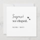 Tarjetas de Invitación únicas y lindas para la recepción de boda 'Sorpresa, nos escapamos' para recién casados | Tarjeta de boda simple en negro y blanco sin foto para elopement | Plantilla de Invitación de fiesta de anuncio de Elopement en línea | Anuncio de 'nos escapamos' e invitación a la recepción | Anuncio digital de Elopement en Facebook Redes sociales