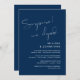 tarjeta de invitaciónfuga de la noviaelegante modernominimalismominimalistaanuncionos escapamossorpresa nos escapamosazul marino elegante
