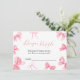 Una encantadora tarjeta de solicitud de juego de sorteo de pañales para baby shower con lazo rosa boho.