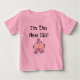 Una adorable bebé con un arco rosado y un pacificador rosado y un texto negro que dice "¡Soy el Nuevo Sis!" en camisetas de hermanas de bebés, trajes de ropa, bolsas de tote, y más que se puede personalizar en el lugar con texto o un nombre!