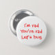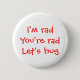 El botón blanco con las letras rojas que me leen "es rad, usted es rad, nos dejó abrazar." Tan simple con todo tan potente.