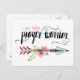Alentar a alguien haciéndoles saber que estás rezando por ellos con este diseño único de tipografía caligráfica que presenta el mensaje "Soy tu Guerrero de la Oración". El diseño se acentúa con una hermosa flecha de acuarela pintada. El interior se puede personalizar con tu propio mensaje personal.