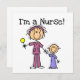 Soy enfermera camisetas, tazas, tarjetas, pegatinas, bolsos, imanes, ratones, ratones y más con una linda enfermera con un bastón y el diseño de un paciente pequeño.