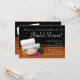 Invitaciones para duchas de spa, perfectas para un fiesta de manicura o una noche de descanso para damas. Un spa elegante, una terapia de masaje o un salón. La escena de la vida muerta incluye artículos que se usarían para un tratamiento de spa, incluyendo sales de baño minerales, aceite corporal perfumado o natural, piedras calientes para masaje calentado, toallas limpias blancas y una flor rosa bonito, sobre una mesa de madera con fondo negro. Disfrute de un chica con ducha de novia en un día de relajación y lujo de relajante spa, pedicura y servicios faciales. Este diseño está disponible como una colección completa que incluye artículos promocionales de negocios, papelería, tarjetas de visita, bebederos, software y más.