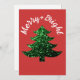 Maravilloso Feliz Navidad árbol de rojo verde nombre tarjeta de vacaciones. Tarjeta estacional personalizar con brillante árbol de Navidad y tipografía. Foto de chispas, no purpurina real.