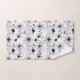 Creepy seamless Halloween pattern featuring black spiders, spider webs, and ink splatters on a white background — perfect for spooky-themed occasion.