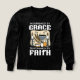 Celebrate faith with this meaningful 'Nourished by Grace, Sustained by Faith' design featuring communion elements like a chalice, bread, wheat, and candles. Perfect for Christian gifts, apparel, and home decor.