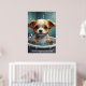 Animales adorables y agradables sentados en una bañera, con gotitas de agua y burbujas alrededor. La imagen de la obra de arte mira al espectador con ojos anchos e inocentes, y sus pequeños pies descansan en el borde de la bañera. El conjunto es agradable y humorístico, ideal para un conjunto poster. Personalice a su poster para que se divierta y riera en su casa o en su espacio de trabajo.