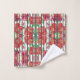 Split image with two designs showcasing vibrant red flowers and green leaves on curtains. Top design is horizontal stripes; bottom is vertical.