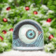 This spooky snow globe features a comic-like illustration of a scary blue eyeball. This is a great ornament for those who love Halloween vibes, horror movies, and zombie movies.