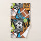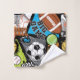 A bold, energetic sports collage featuring basketball, football, soccer, tennis, and baseball elements with dynamic typography like “Big Game,” “Goal Time,” and “Winner,” set in bright, high-contrast colors.