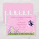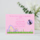 bonito rosado jardín rsvp para fiesta de cumpleaños o celebración. Pájaro de color púrpura y catepillar en el jardín