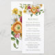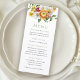 A bright and sunny floral choice for spring and into early summer, this Menu design features a bouquet of vibrant watercolor spring blossoms in shades of yellow, orange, white, pink and green. Flowers include daffodils, narcissus, ranunculus and other mixed florals and greenery. It's a lovely choice for spring luncheons, bridal showers, garden parties and more. Edit the simple design template with your menu information. You can change the fonts, add or remove lines of text and re-word this template to suit your style and personal preferences. If you wish to change the font selection, personalize the text first, then choose "customize further" found at the bottom of the text template.
