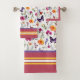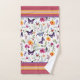 A Bath Towel Set Patterned In Colorful Spring Flowers With Purple Butterflies For Your Bath.