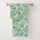 Paisley y flores decoradas en tonos suaves en un diseño general. verde menta, amarillo, azul verde azulado y un toque de lavanda.