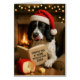 Humorous Christmas card featuring a black and white English springer spaniel dog reading 'The Cheese Tax at Home Regulations 2025' whilst trying to resist the urge to eat the cheese that someone's left on the table right in front of its nose!