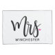 Sr. moderno y de moda + Señora sistema de la funda de almohada del recién casado en la escritura negra personalizada con su propio nombre.