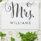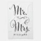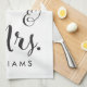 Esta moderna toalla de cocina incluye un guión de Mr. y Mrs. y puede ser personalizado con un nombre.