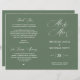 Esta es la tarjeta plegable del programa de la ceremonia de boda, con una temática rústica clásica de salvia verde. Está diseñado con acento de desplazamiento que puede ser personalizado con texto personalizado/ personalizado para su fiesta nupcial, detalles de la ceremonia, notas conmemorativas y mensaje de agradecimiento. ** Nota: estos programas de papel de peso de texto llegan planos y requieren plegado para ensamblar.