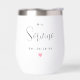 Un elegante vaso térmico para vino con la inscripción Sra. en letra script refinada y el apellido personalizado en monograma, junto con la fecha de boda establecida, acentuado por un delicado corazón rosa. La tipografía elegante en un vaso blanco limpio crea un sofisticado recuerdo nupcial. Un regalo hermoso para la novia en su día de boda, ducha nupcial o aniversario. Se combina con el vaso Mr a juego. Todo el texto es totalmente personalizable.
