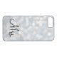 Este es un divertido y coquetón funda de iPhone 7 acentuado con la Sra. escrita en guión lujoso en un brillante fondo plateado. Nota: no se usan purpurinas o secuencias para hacer este funda, el fondo brillante es un ilustracion de fotos. Este funda es fácil de personalizar con su monograma si lo prefiere.