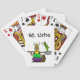 En este diseño, St. Urho está lidiando con un saltamontes que se sienta encima de su horquilla y da el signo de "Paz" con su mano derecha.