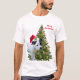 La imagen es un cachorro de bull terrier de staffordshire con un árbol de Navidad y baudibles con la imagen de cachorro de su personal invertida en ellos
