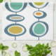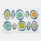 Añada un toque de color a su cocina de mediados del siglo con esta adorable toalla de cocina retro. Los colores turquesa, azul, naranja, dorado y tostado son vivos y llamativos.