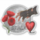 Pegatina brillante sobre Stalker 2, juego ucraniano. Aquí se pueden ver flores rojas, luna y mano. Pintado de amor.