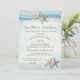Invitación a bodas en la playa rústica con romántico encaje, estofado y diseño de cinta azul celeste y fondo acuático. Diseño de corazón tras esta invitación. Cambiar el texto de estilo de tipografía como prefiera.