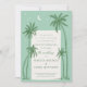 Este diseño de boho forma parte de una colección de palmeras verdes contra un cielo estrellado nocturno con la luna y las estrellas. Esto sería perfecto para quien quiera una invitación al estilo boho para una boda en la playa o destino o una vibra de Palm Springs en verano.