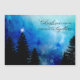 Hermosos y elegantes pinos en la silueta sobre un fondo de cielo de invierno nocturno estrellado azul profundo con una sola estrella brillante y citas de Navidades con gráficos de texto personalizado y campos de texto editables.