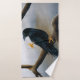 El cuervo Steampunk con un viento mecánico de oro en su espalda lo convierte en un cuervo mecánico sentado en una extremidad de árbol en un día de invierno.