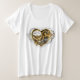 Mechanical, volumetric, steampunk heart with pressure gauge, steel and gold gears on white background. Steampunk style.