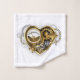 Mechanical, volumetric, steampunk heart with pressure gauge, steel and gold gears on white background. Steampunk style.