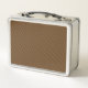 This lunchbox is a mixture of 80s portable radio cassette player mixed with steampunk, lots of faux switches, buttons, metal and wood combined to make an attractive novelty lunchbox, for lovers of gadgets, retro, vintage, nostalgia, it even has a faux speaker on the back, looks fantastic in silver or black.