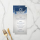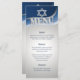 Menú de diseño de ondas azules de acero personalizado para complementar nuestras invitaciones de Bar Mitzhah en plata y azul. menú personalizar o cualquier texto de esta tarjeta de dos caras.