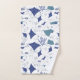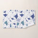 Toalla Guay azul y blanca con un patrón de zigzagueo en un arrecife de coral y nadando bajo el agua.